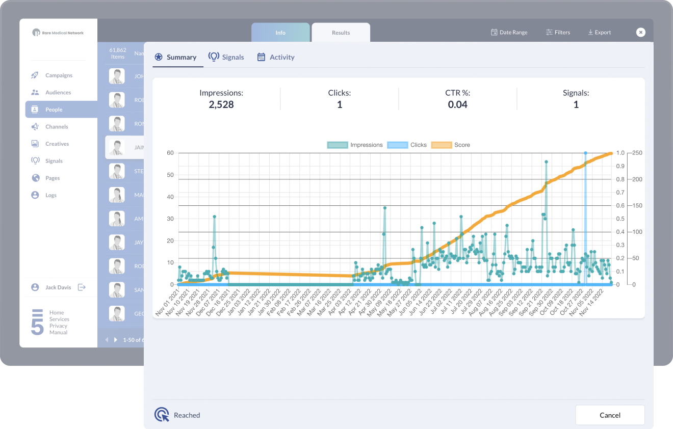 An HCP-level report on engagements across all campaigns, audiences and channels.